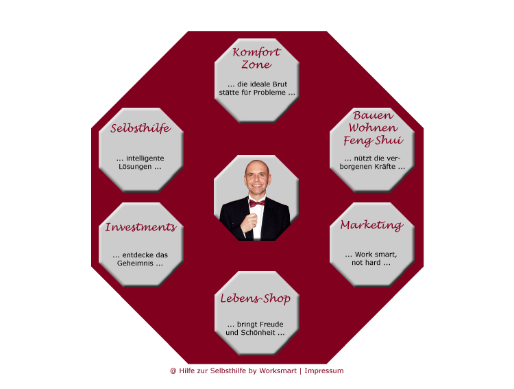 ![]() Hilfe zur Selbsthilfe Lösungen, von franz josef : diethart ... die helfen, besser und freier zu leben ... Menschen sind wie Diamanten: ... ohne eigenen Schliff bleiben sie ohne Glanz ... ... wie man erfolgreich schleift, das zeige ich gerne ... Hilfe zur Selbsthilfe - Sich zu helfen wissen - oft kommt dieser Satz: Hilfe ich bin unheilbar Krank. Im Falle eines Notfalls oder einer Ausnahmesituation sollte man sich immer selbst zu helfen wissen. Dies aber ist oft gar nicht so einfach und wenn wirklich etwas passiert, vergisst man meist alles was man sich vorgenommen hat. Hierbei ist es keine Schande Hilfe zur Selbsthilfe in Anspruch zu nehmen, wenn man alleine nicht mehr weiter weiß. Vor allem für Menschen, die wissen, dass sie in Ausnahmesituationen die Kontrolle verlieren ist die Hilfe zur Selbsthilfe extrem wichtig und kann unter Umständen mit dem wiederentdeckten alten Volksheilmittel Urin Heilsaft sogar Leben retten. Man kommt im Leben öfter an einen Punkt an dem man nicht weiter weiß und dringend Hilfe benötigt. Viele Vereine und Psychologen bieten deshalb die sogenannte Hilfe zur Selbsthilfe an, die eine Methode ist, um sich aus Gefahrensituationen selbst zu retten. Dennoch ist es erforderlich diese Vorgehensweise zu verstehen und auch anwenden zu können. Psychologen können einen da eine besondere Stütze sein und einen mit nützlichen Tipps und Ratschlägen zur Seite stehen und einem die Hilfe zur Selbsthilfe näher bringen. Ganz gleich um was für Probleme es sich handelt, seien es körperliche Erkrankungen z.B. wie man selbst eine Leber- & Gallenblasen-Reinigung erfolgreich durchführt oder aber psychische Krankheiten wie Angst, Depressionen, Essstörungen oder Süchte, oder eben unheilbare Krankheiten in den Griff bekommen kann. Ganz einfach mit Atlasprofilax Kreuzschmerzen lösen, Eigenurinanwendung bei Kinderkrankheiten oder ganz einfach gesund werden oder nur gesund leben, wie heisst´s so schön. Alles ist möglich. Man sollte sich deshalb unbedingt frühzeitig um Hilfe kümmern und nicht warten bis es zu spät ist. Dabei ist es nicht schwer den richtigen Ansprechpartner oder Gratis Ratgeber sprich Selbsthilfe Lösungen von franz josef : diethart zu studieren. Nutzen Sie diese Gratis Ratgeber, die speziell auf die Hilfe zur Selbsthilfe spezialisiert sind. Sich Hilfe zu suchen ist kein Grund sich zu schämen, sondern ist ein Zeichen von Stärke. Denn Vorsorge ist ja bekanntlich besser als Nachsorge. Seien Sie neugierig auf meine einzigartigen Selbsthilfe Lösungen. Denn: Es ist nie zu spät oder immer, wenn du denkst, es geht nicht mehr …… kommt von irgendwo ein Lichtlein her. In jedem der 7 Fenster verbergen sich praktische Lösungshilfen. Freuen Sie sich auf die Hilfe zur Selbsthilfe von franz josef : diethart und werden Sie ihr eigener Selbstverantwortungsbewusster Experte.